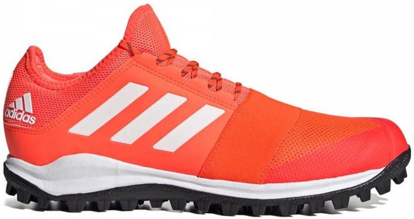 De adidas Divox hockeyschoenen zijn dit jaar nieuw in de adidas collectie en zijn de opvolgers van de adidas SRS hockeyschoenen. Dit is een stabiele adidas hockeyschoen die over alle functies beschikt, waar een hockeyschoenen over moet beschikken. De hockeyschoen beschikt over een multi-zool die zeer geschikt is voor voor trainingen en wedstrijden. De schoen is snel drogend en gemaakt van synthetisch leer. De gedeeltelijk sokconstructie zorgt samen met de EVA-tussenzool voor optimaal comfort en demping tijdens het hockeyen. De overlay op het bovenwerk zorgt voor stabiliteit, ondersteuning en duurzaamheid van de schoen. De Traxion zool zorgt voor maximale grip in alle richtingen, waardoor je snelle manoeuvres kunt uitvoeren tijdens het hockeyen.- Verkrijgbaar in verschillende kleuren- Ideaal voor een speler die gaat voor duurzaamheid, stabiliteit en stevigheid.